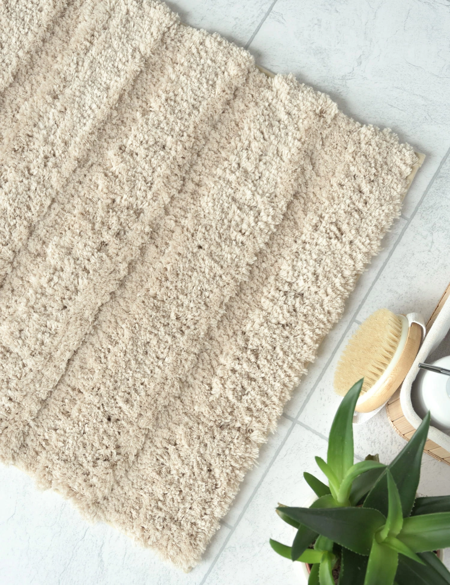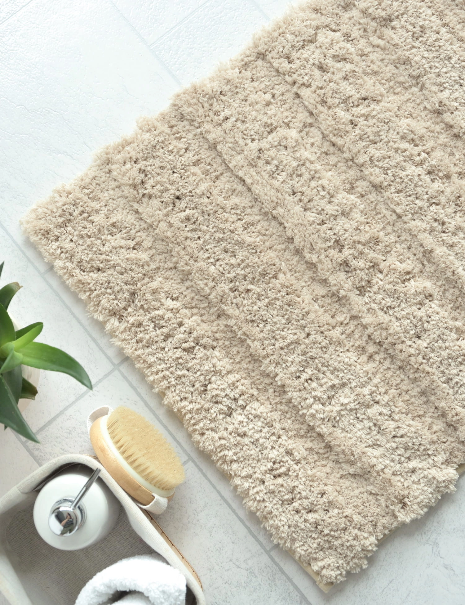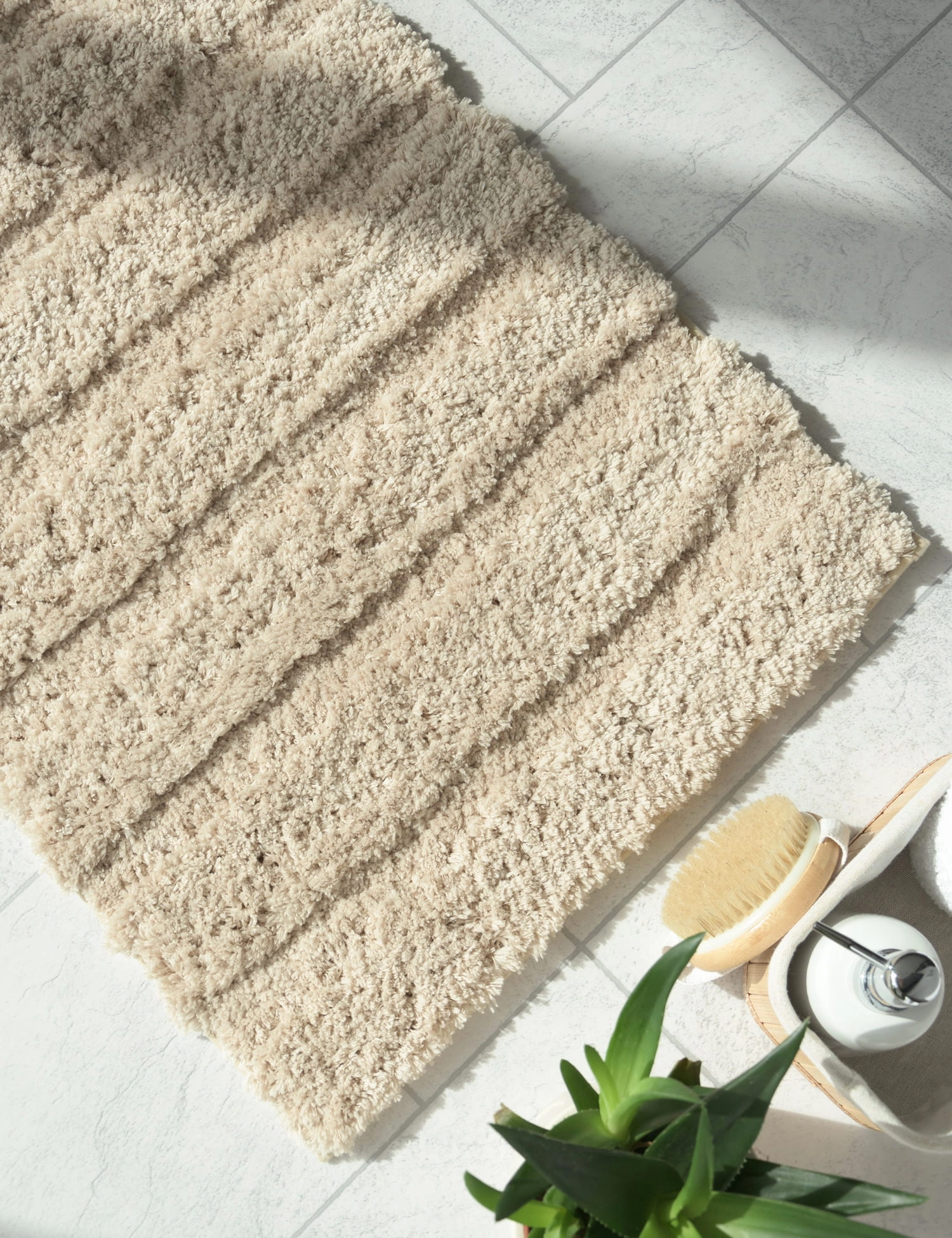 - Miękki, puszysty dywanik łazienkowy.