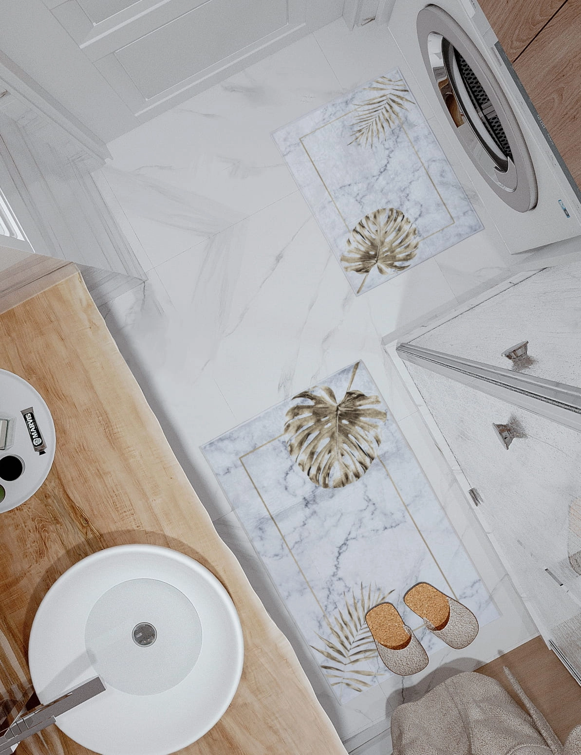 ANTYPOŚLIZGOWY KOMPLET ŁAZIENKOWY MARMUR BIAŁY