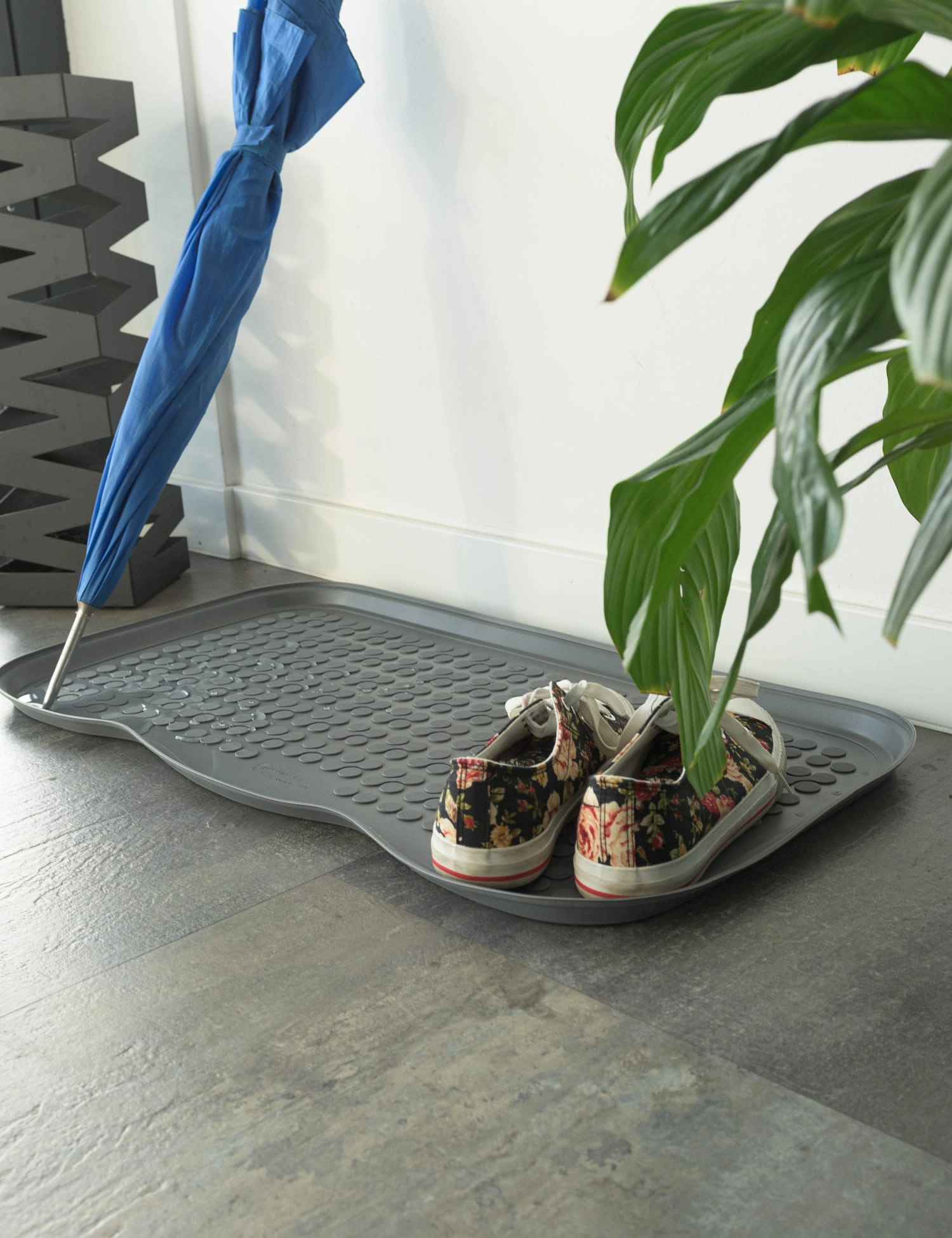 Wysoka krawędź ociekacza zapobiega wydostawaniu się zebranej wody lub błota. Z łatwością pomieści 3 pary butów, chroniąc podłogę przed zabrudzeniem i uszkodzeniem.
