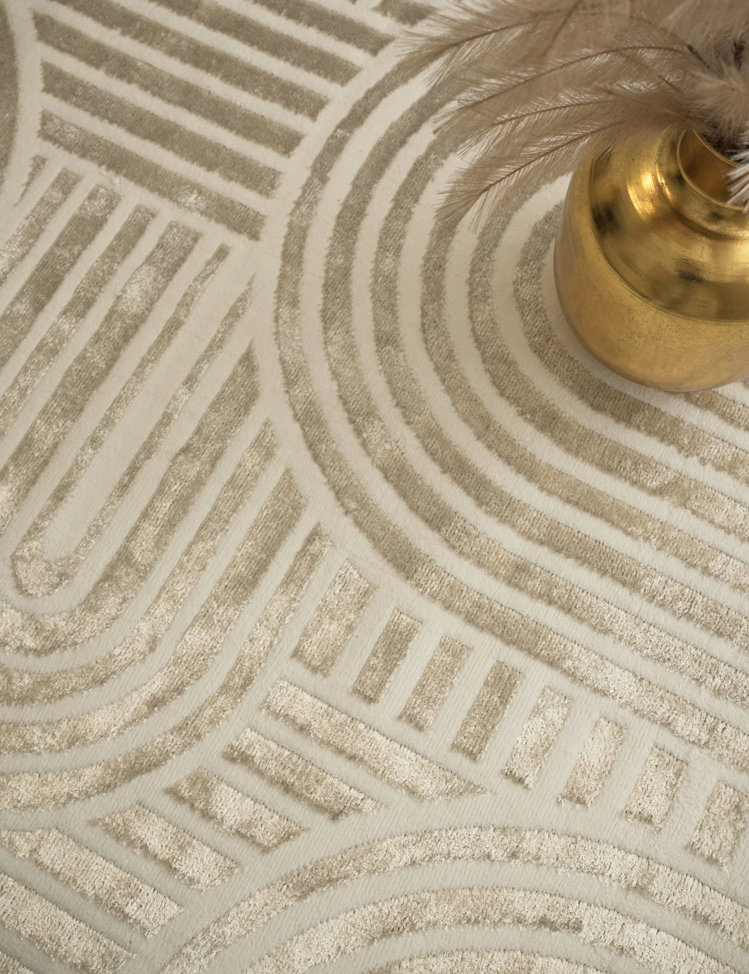 Niezwykle miły i przyjemny w dotyku, charakteryzuje się niskim, gęstym runem o dwóch wysokościach. Wzór jest tkany kilka milimetrów wyżej a w zależności od oświetlenia oraz kąta padania światła daje inny efekt kolorystyczny, mieniąc się i niezwykle atrakcyjnie połyskując.
