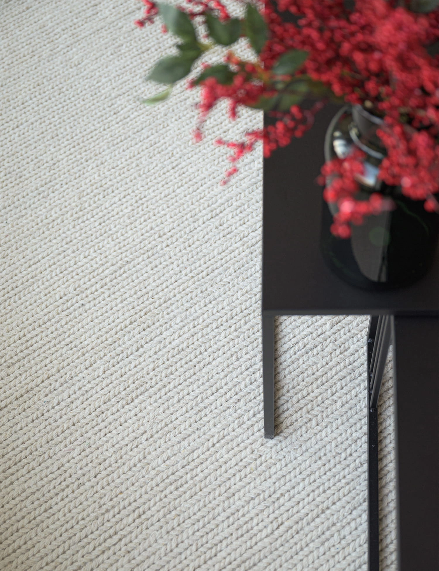 Duże rośliny doniczkowe świetnie pasują do wełnianego dywanu, podkreślając jego naturalny charakter. Ich efektowne liście pięknie kontrastują z plecionkową teksturą dywanu, tworząc ciekawy efekt. To idealny wybór do większych przestrzeni, gdzie rośliny staną się wyjątkowym akcentem, łączącym się z naturalnymi materiałami i nadającym wnętrzu przytulną, ciepłą atmosferę.