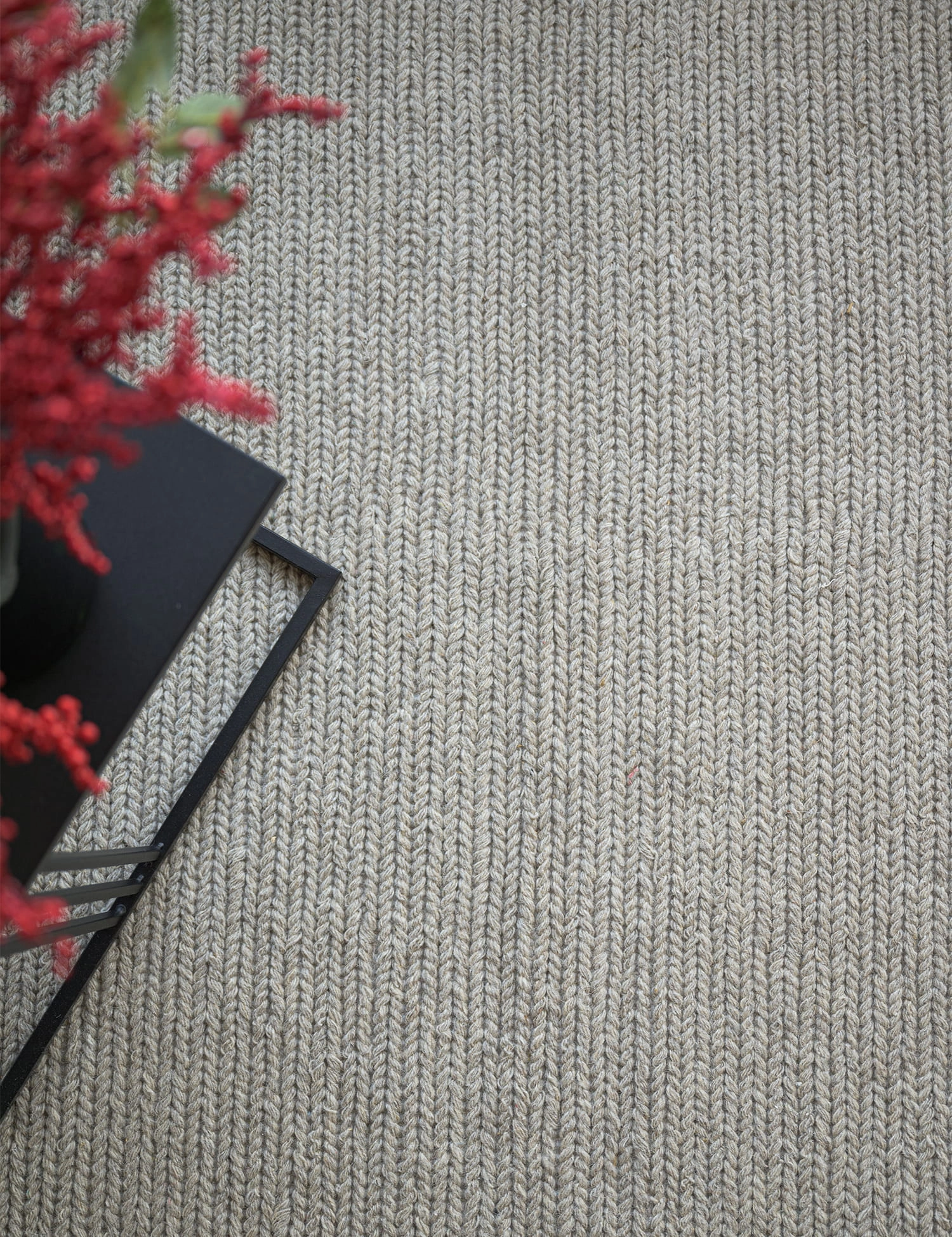 Duże rośliny doniczkowe świetnie pasują do wełnianego dywanu, podkreślając jego naturalny charakter. Ich efektowne liście pięknie kontrastują z plecionkową teksturą dywanu, tworząc ciekawy efekt. To idealny wybór do większych przestrzeni, gdzie rośliny staną się wyjątkowym akcentem, łączącym się z naturalnymi materiałami i nadającym wnętrzu przytulną, ciepłą atmosferę.