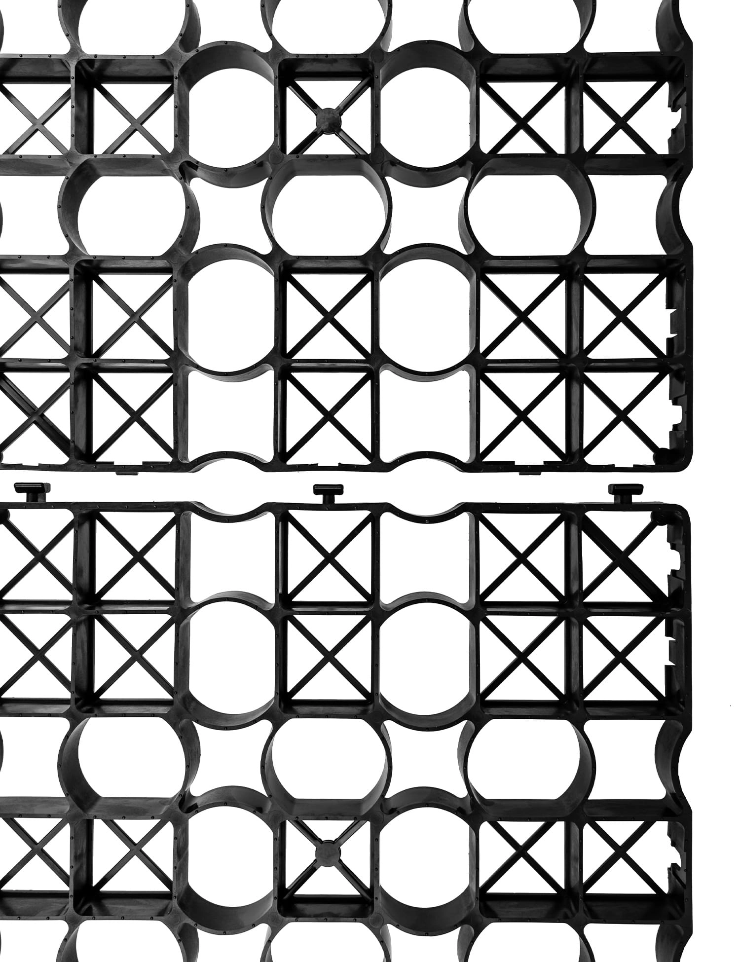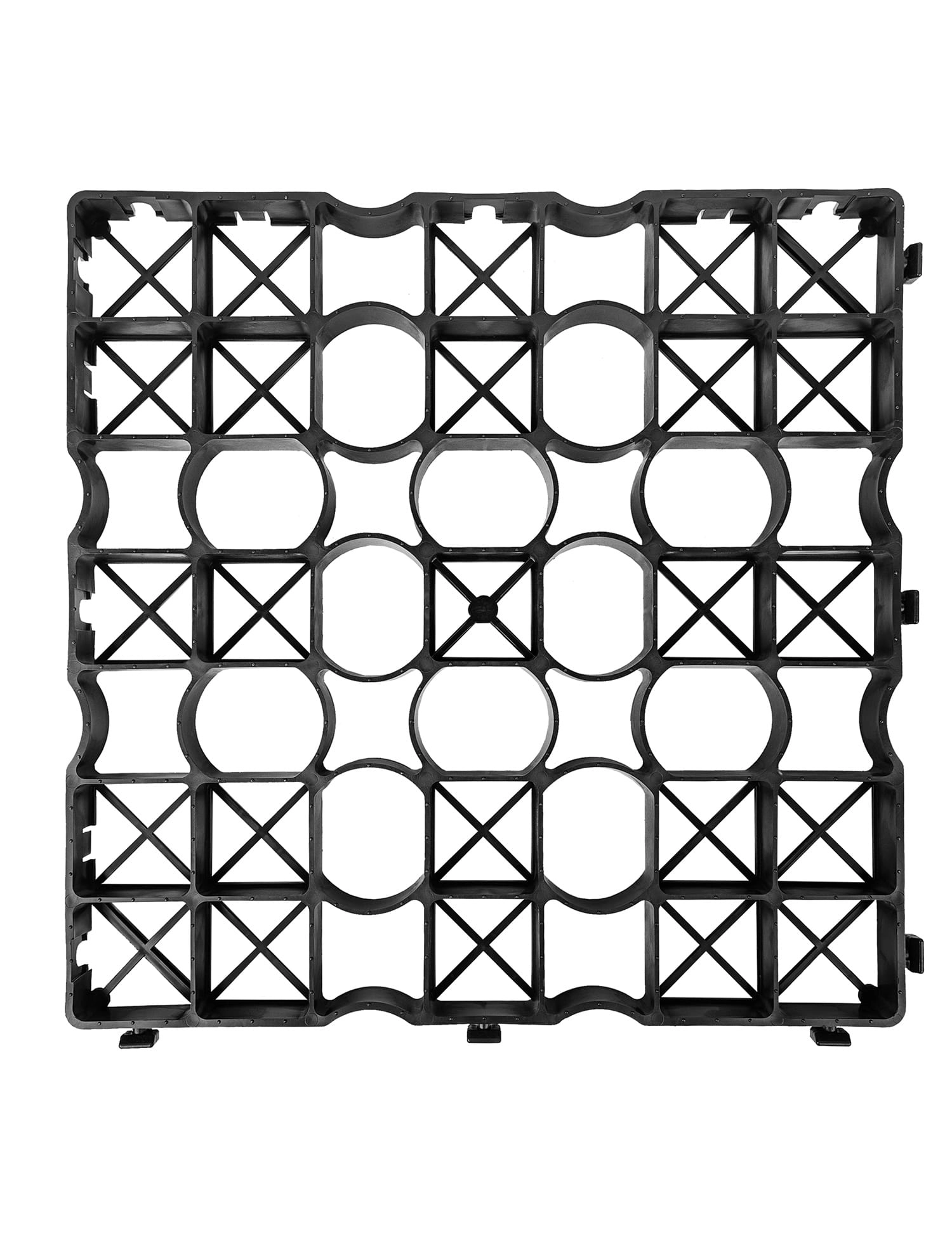 Głównym zadaniem produktu jest stabilizacja gruntu, co przekłada się na zwiększenie wytrzymałości nawierzchni oraz jej odporności na deformacje. Dzięki zastosowaniu kratek eliminowany jest problem zapadania się podłoża i tworzeniu kolein. Konstrukcja kratek IG25 umożliwia także efektywne odprowadzanie wody, co zapobiega powstawaniu kałuż i zapewnia bezpieczne użytkowanie nawet w trudnych warunkach. Dodatkowo kratownice nie tylko sprzyjają ukorzenieniu trawy i roślin, ale także wspierają ich zdrowy i trwały rozwój.