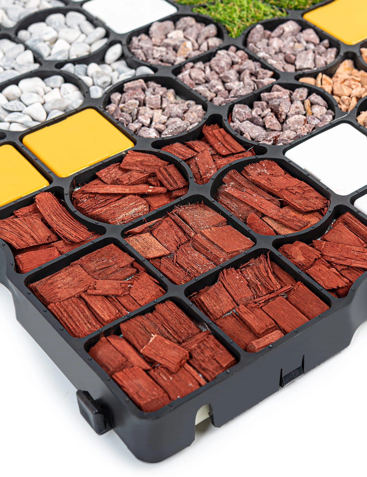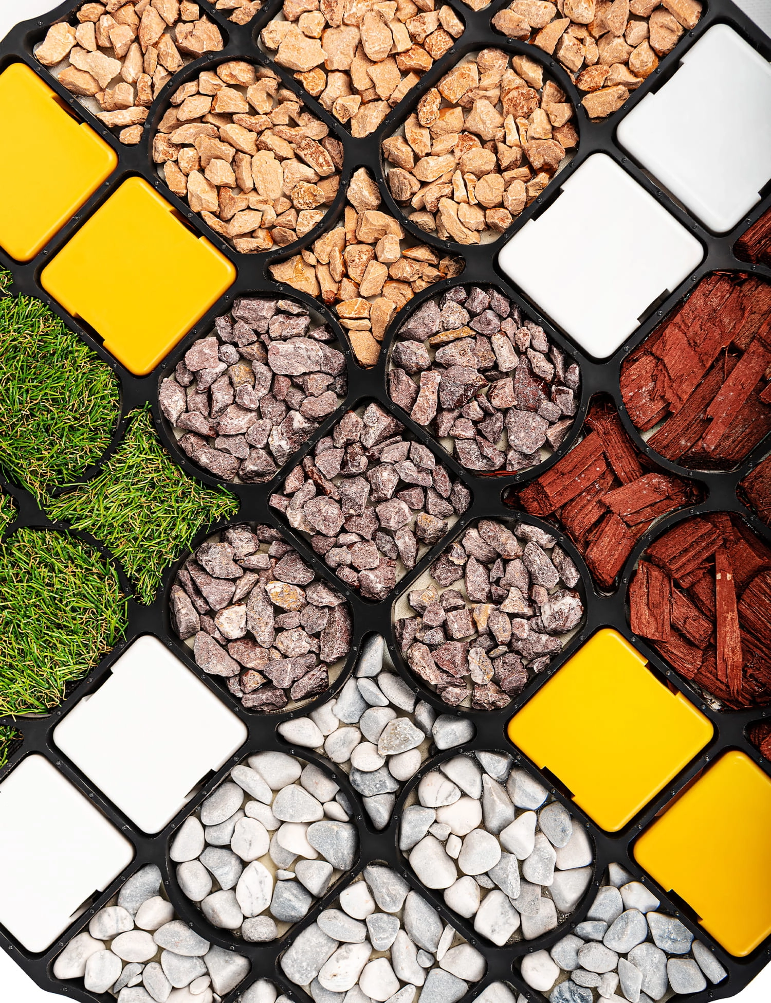 Wytrzymały system mocowań sprawia, że połączone elementy tworzą stabilną, jednolitą siatkę. Wysokość kratki wynosząca 2,5 cm umożliwia użycie niewielkiej ilości zasypu, co przekłada się na niższe koszty inwestycji. Można ją wypełnić różnorodnymi materiałami, takimi jak trawa, grys, piasek, żwir, trociny czy zmielona kora, co pozwala na dostosowanie wyglądu nawierzchni do indywidualnych potrzeb i preferencji estetycznych. Kratki trawnikowe można przycinać, korzystając z piły tarczowej lub przecinarki kątowej. Dzięki temu dostosujesz je do swojego projektu bez żadnych problemów.