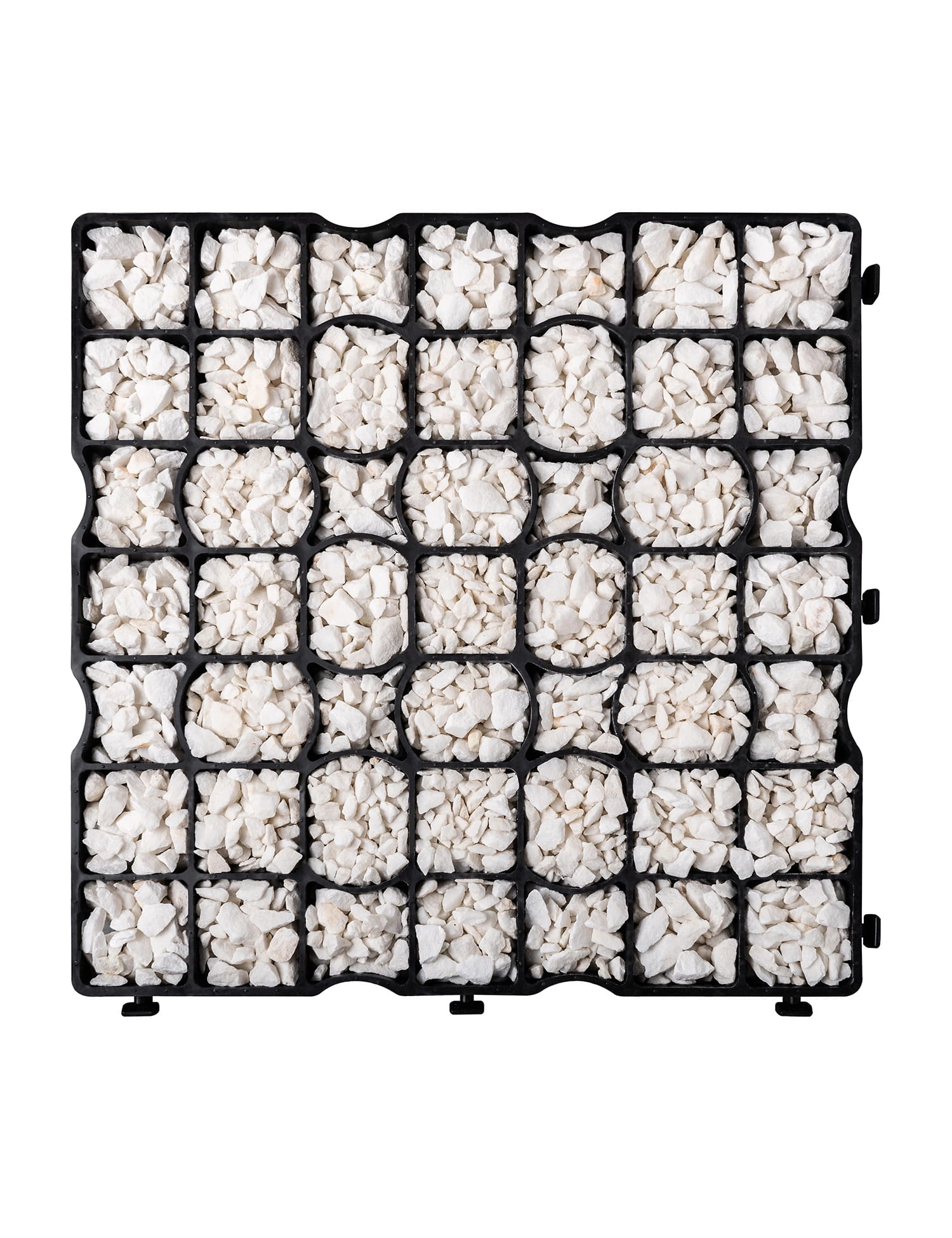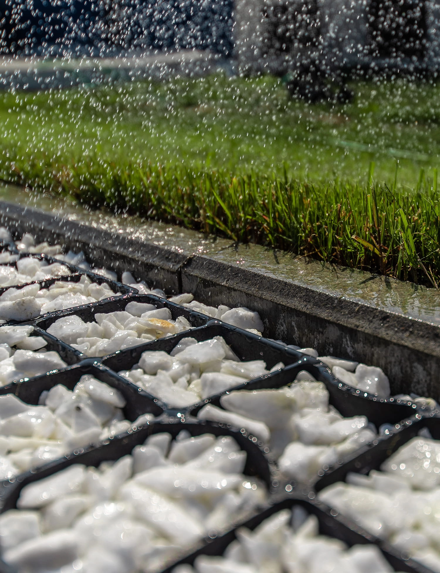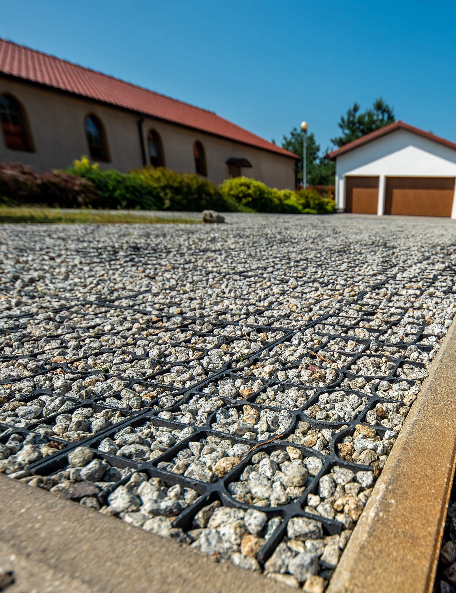 - Kruszywo: Wypełnić kratki żwirem lub kruszywem. Zaleca się nadsypanie kruszywa 1-2cm ponad powierzchnię kratki.