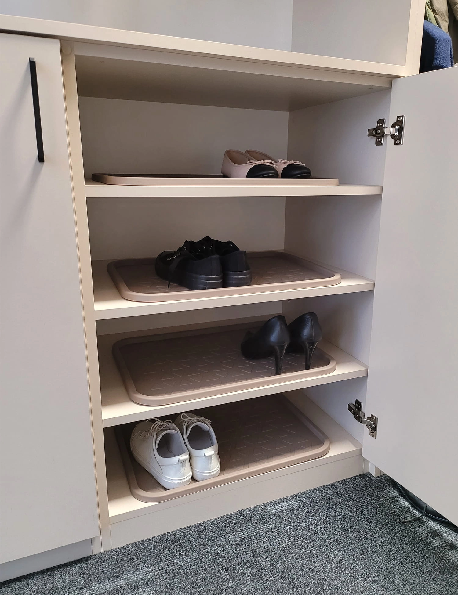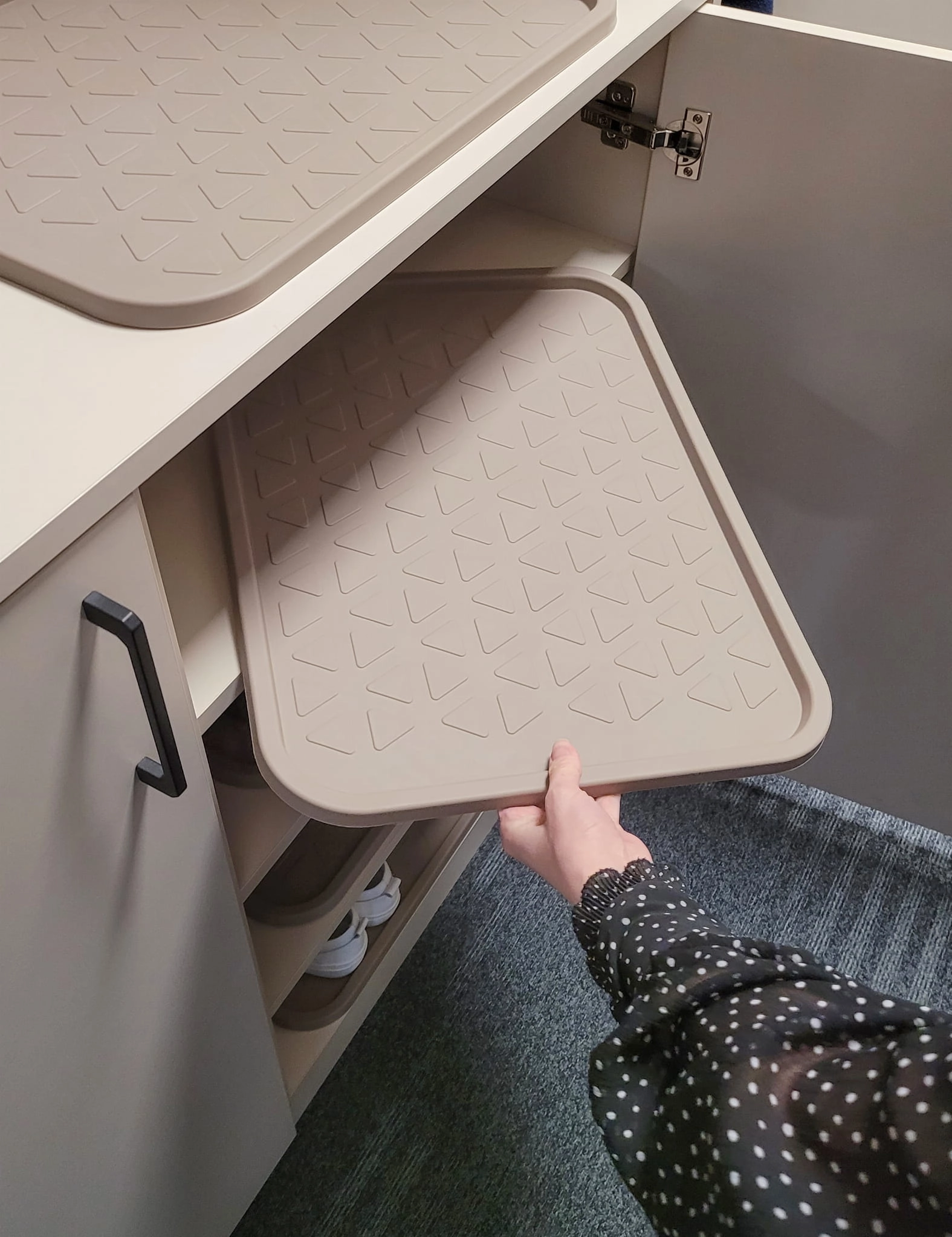 Z ociekaczem DUMBO skutecznie zorganizujesz przestrzeń w szafie, w której przechowujesz buty. Podkładka ochronna, zabezpieczy półki przed wilgocią i zabrudzeniami zachowując porządek i czystość.