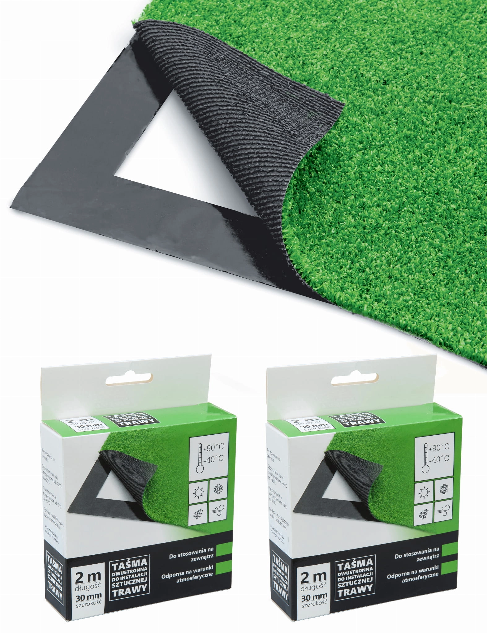Zestaw 2 Taśma do sztucznej trawy 30 mm rolka 2 m