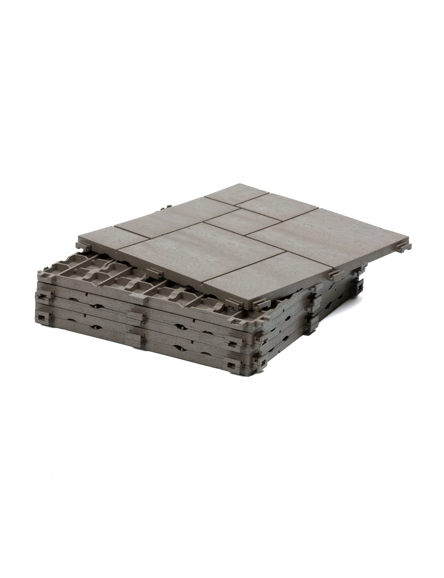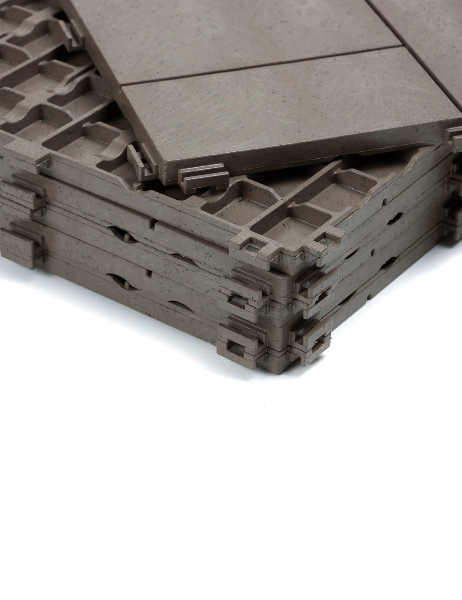 Podłoże powinno być utwardzone, wyrównane i oczyszczone z kurzu. Jeżeli jest ono kruszące się lub pyliste należy je zagruntować. Płytki nie są przeznaczone do mocowania na klej. Płytki łączą się ze sobą specjalnymi zatrzaskami. Można je wielokrotnie montować i rozmontowywać. Istnieje możliwość ich docinania na potrzebny wymiar. Należy zostawić dylatacje (3- 4 mm na płytkę), gdyż tworzywo pod wpływem warunków atmosferycznych zmienia swoją właściwości.